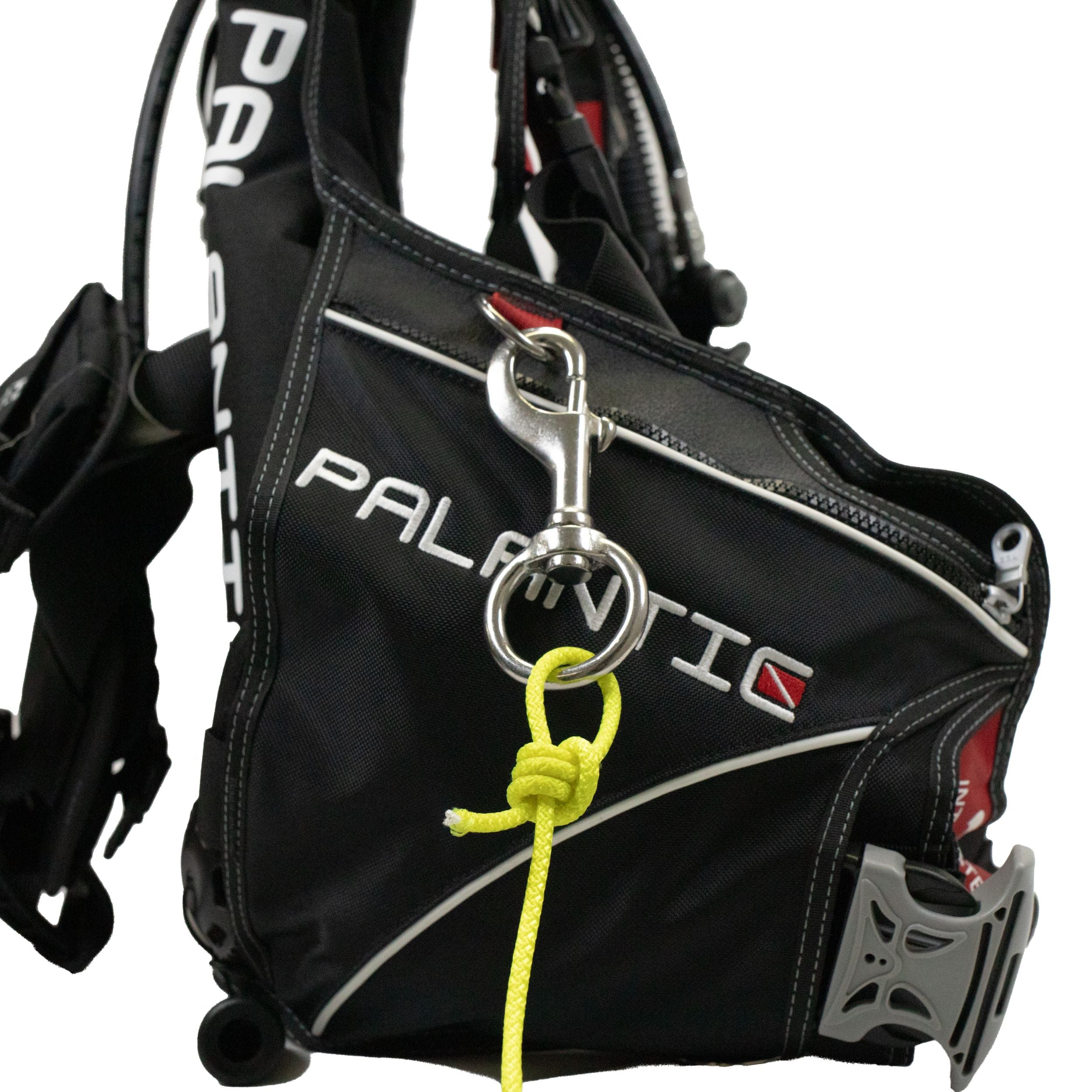 Quick-release snap hook secures easily to dive gear, BCDs, kayaks, boat lines, keychains, or outdoor equipment