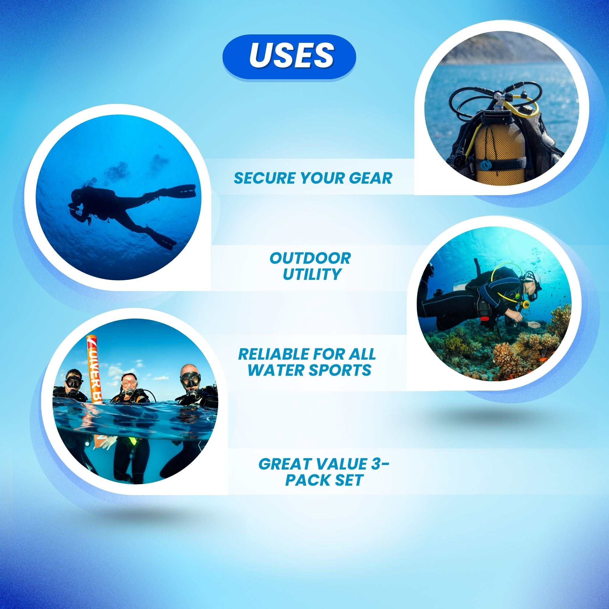 Versatile Dive Utility – Park an SPG hose, clip SMBs and finger spools, tether lights/cameras, manage accessories.