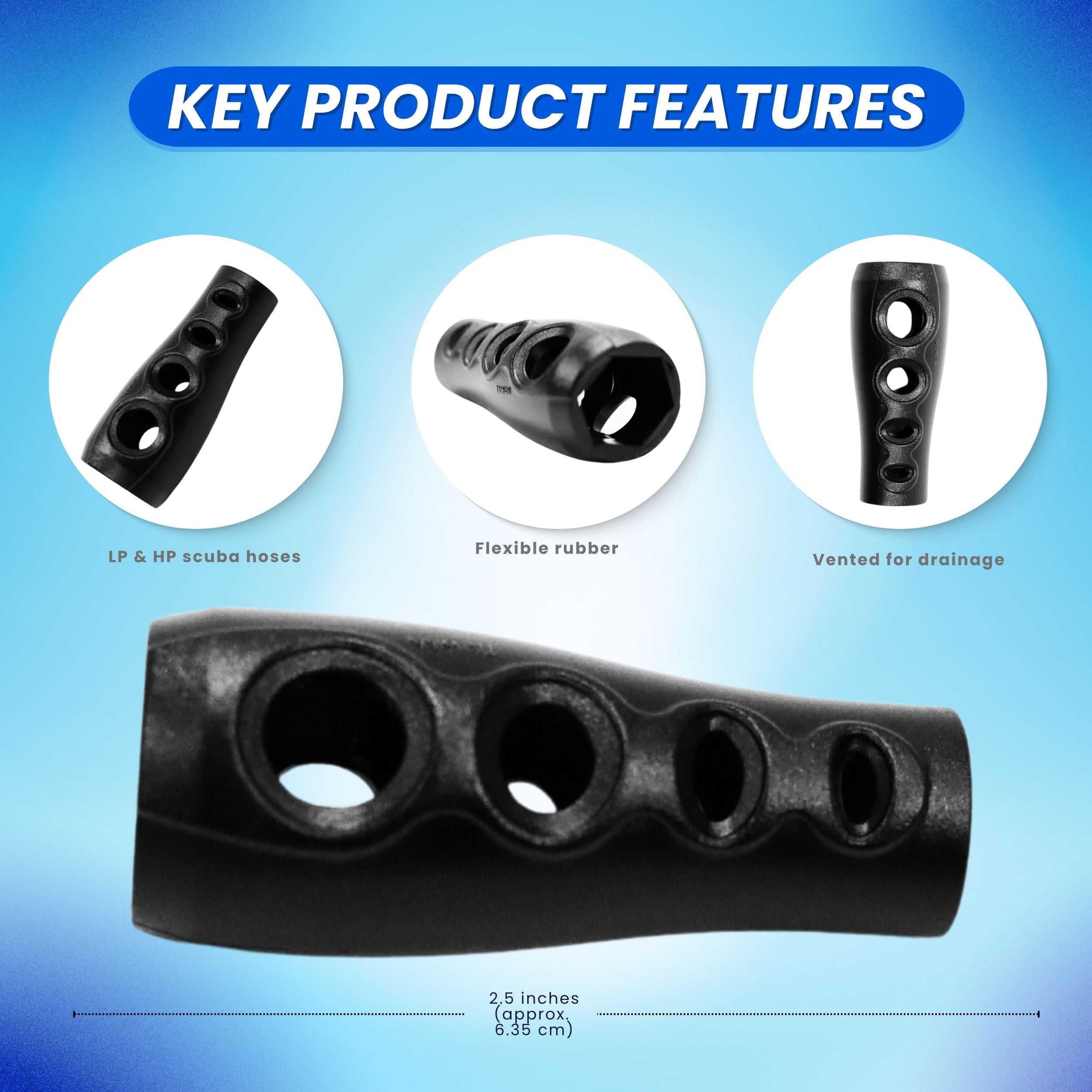 The Scuba Choice 2.5" Vented Regulator Hose Protector is a simple but essential accessory for divers who want to extend the life of their hoses. It shields the vulnerable connection at the first stage from sharp bends and stress, reducing wear and leaks over time.